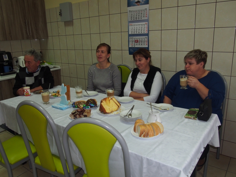 W dniu 11.04.2019r. ŚDS w Jelczy odwiedziły przedstawicielki Koła Gospodyń Wiejskich z Tczycy. Wszyscy zebraliśmy się w pracowni kulinarnej i przy kawie oraz słodkim poczęstunku, rozmawialiśmy na temat zbliżających się Świąt Wielkanocnych, a także tradycji z tym związanych. Panie przywiozły dla Uczestników świąteczne smakołyki domowej roboty, za które serdecznie dziękujemy.