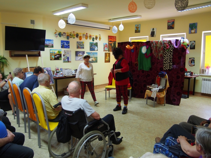 Przedstawienie W dniu 22.06.2023r. w Środowiskowym Domu Samopomocy w Jelczy odbyło się przedstawienie, zaprezentowane przez grupę teatralną z Krakowa.