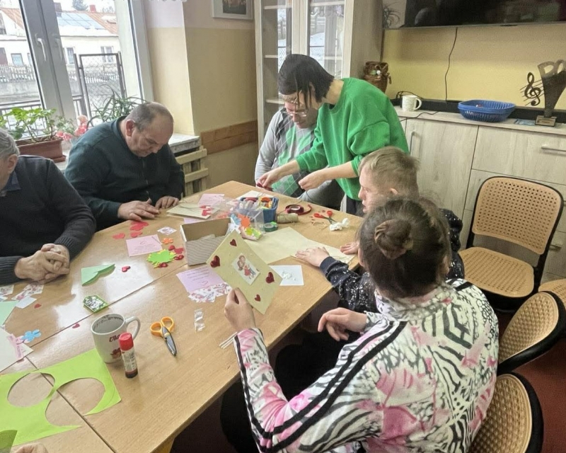 W dniu 05.02.2026r. uczestnicy ŚDS w Jelczy wraz z opiekunami wzięli udział w warsztatach robienia kartek i upominków walentynkowych, które odbyły się w PSONI Koło w Miechowie.